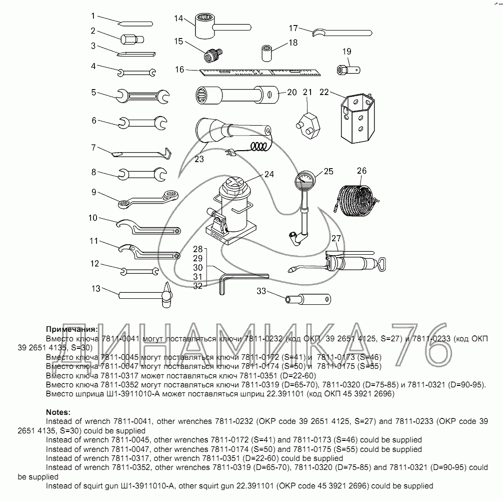 Перечень комплектующих от Комплект инструмента и принадлежностей на БелАЗ-75131