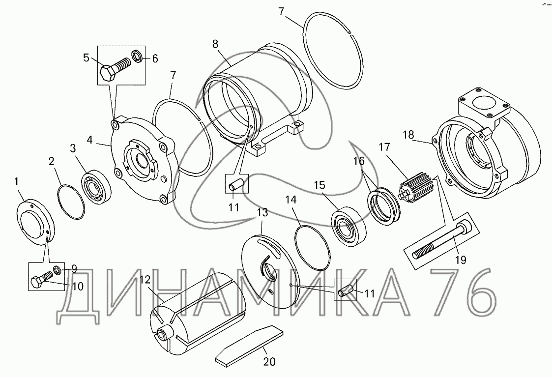 Перечень комплектующих от Пневмодвигатель (7549-1026100) на БелАЗ-75131