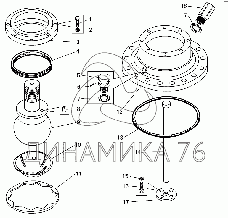 Перечень комплектующих от Крышка заднего цилиндра подвески верхняя на БелАЗ-7513