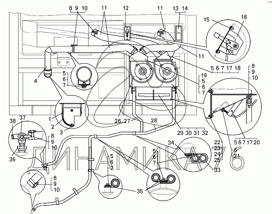 Перечень комплектующих от Отопитель кабины и его установка на БелАЗ-7513