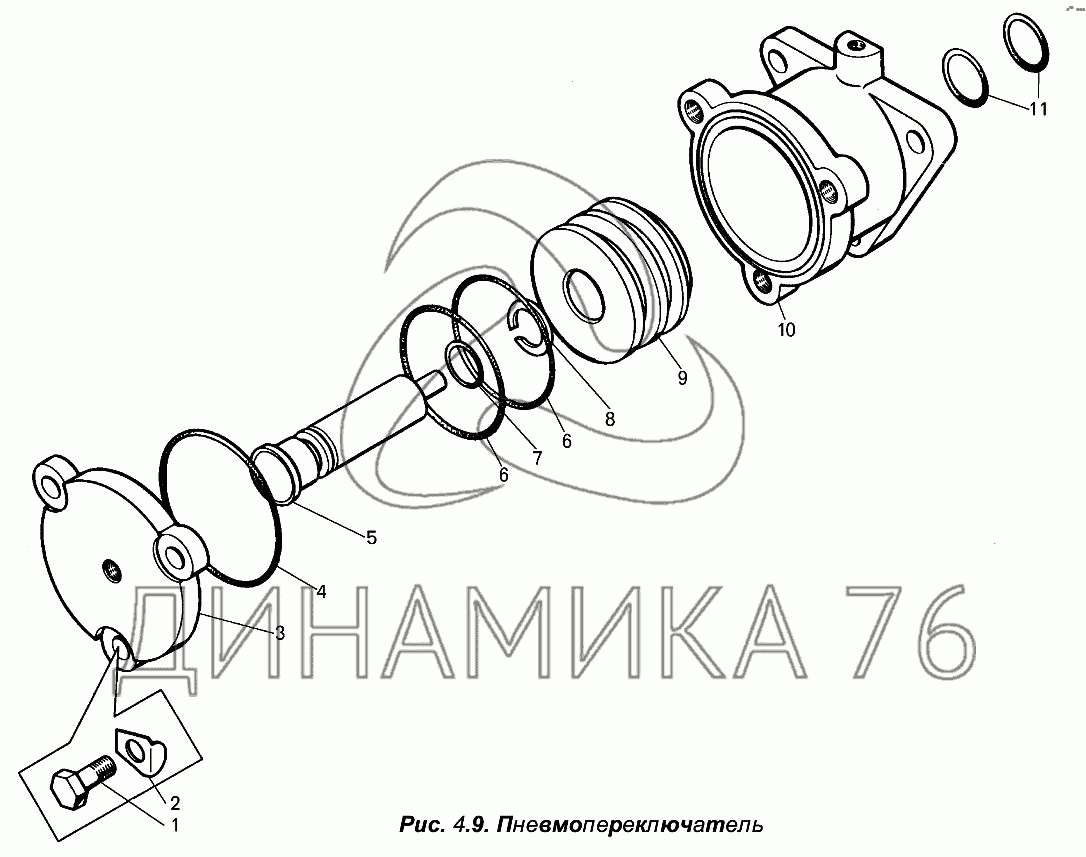 Перечень комплектующих от Пневмопереключатель на БелАЗ-7513