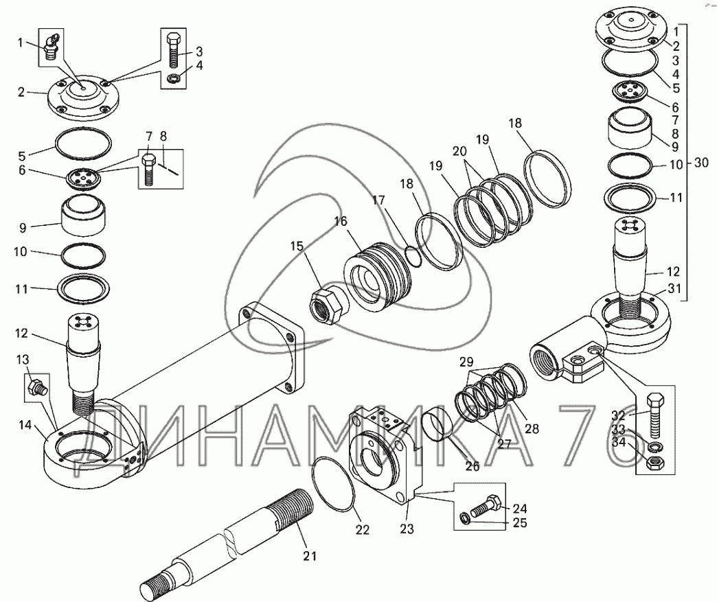 Схемы запчастей предназначены для справочных целей! Мы продаем не все запчасти от Цилиндр поворота на БелАЗ-7513, представленные в этом списке.
