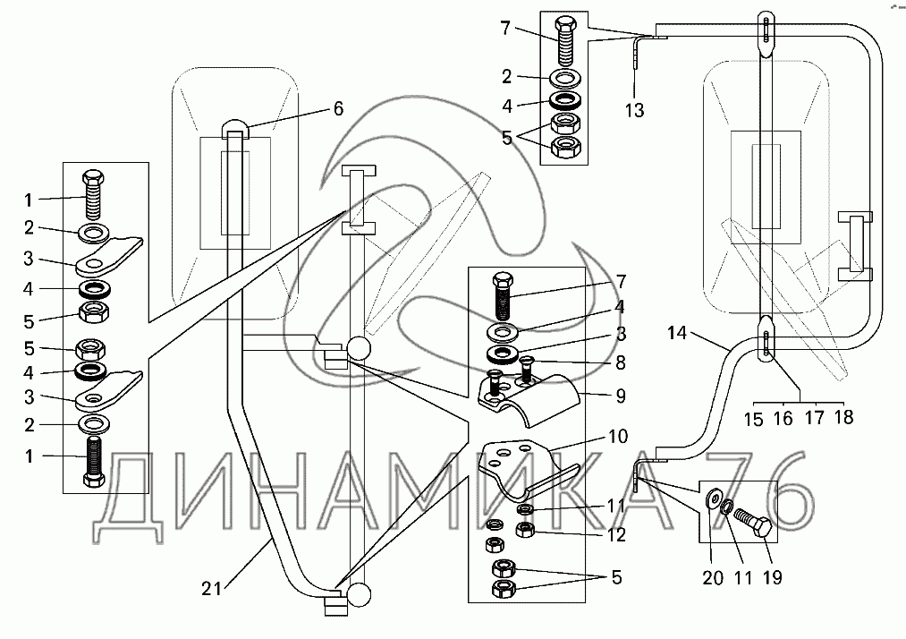 Схемы запчастей предназначены для справочных целей! Мы продаем не все запчасти от Установка кронштейнов зеркал на БелАЗ-7513, представленные в этом списке.