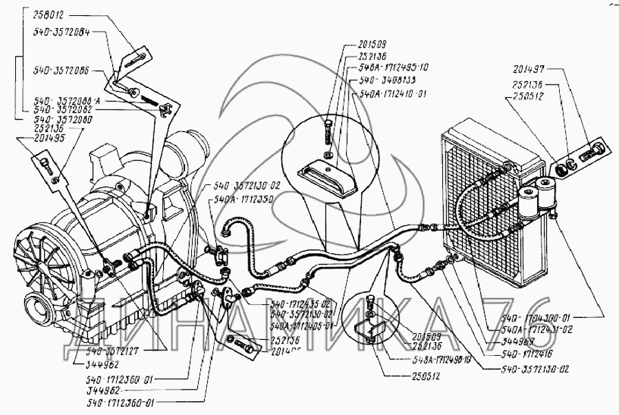 Перечень комплектующих от Трубопроводы и шланги гидромеханической передачи на БелАЗ-7522