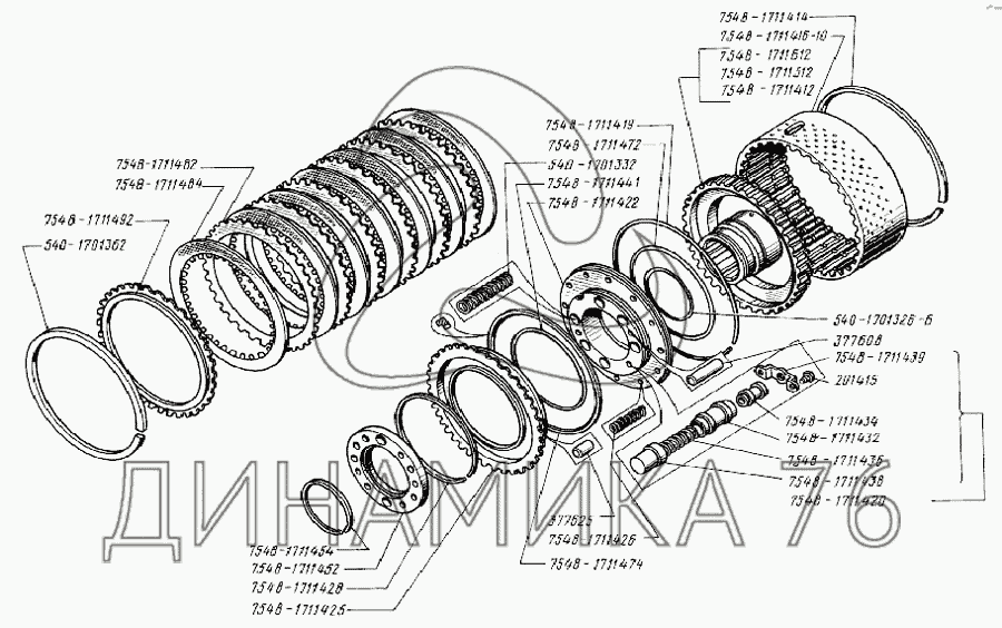 Перечень комплектующих от Фрикцион пятиступенчатой гидромеханической передачи на БелАЗ-75231