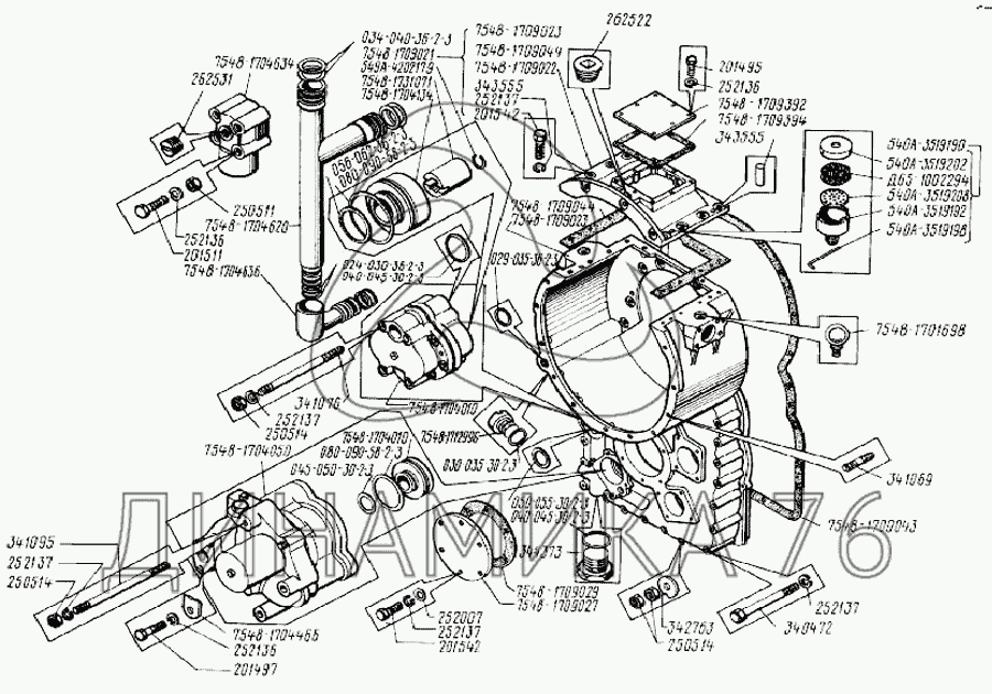 Схемы запчастей предназначены для справочных целей! Мы продаем не все запчасти от Картер гидротрансформатора на БелАЗ-75231, представленные в этом списке.