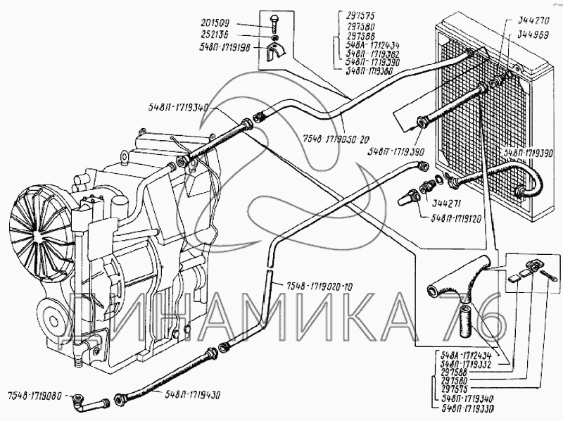 Перечень комплектующих от Трубопроводы и шланги гидромеханической передачи на БелАЗ-75231
