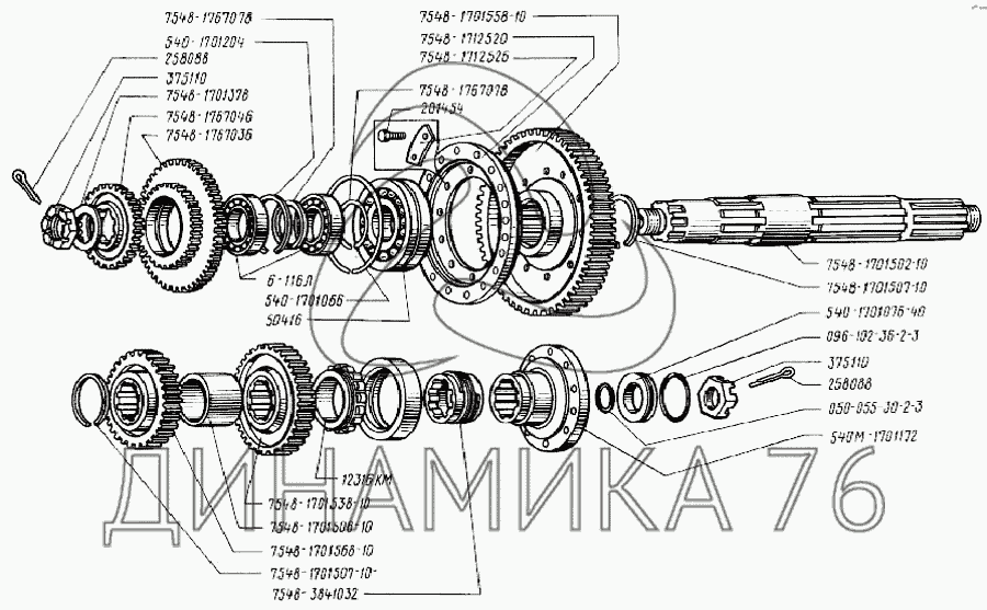 Схемы запчастей предназначены для справочных целей! Мы продаем не все запчасти от Ведомый вал пятиступенчатой гидромеханической передачи на БелАЗ-75231, представленные в этом списке.