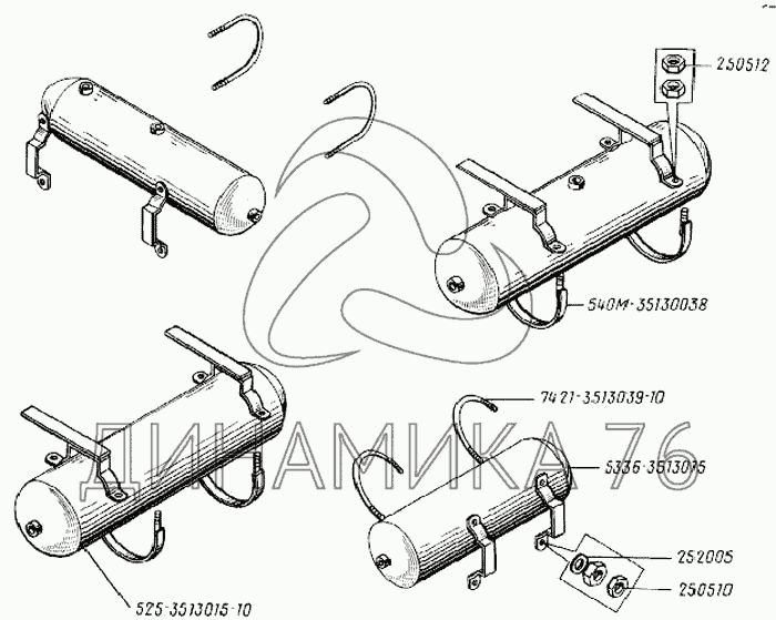 Перечень комплектующих от Воздушные баллоны и их установка на БелАЗ-75231
