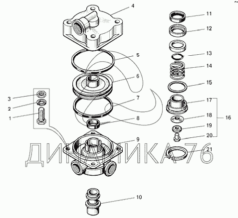 Перечень комплектующих от Клапан ускорительный на БелАЗ-75306
