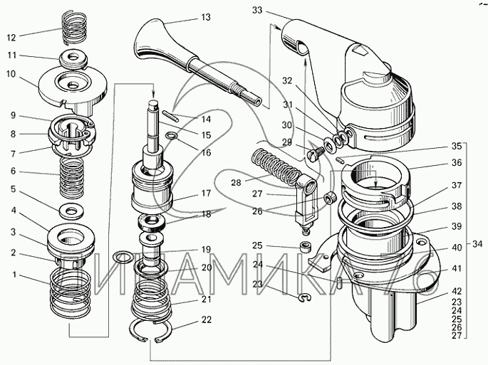 Схемы запчастей предназначены для справочных целей! Мы продаем не все запчасти от Кран управления стояночным тормозом на БелАЗ-75306, представленные в этом списке.