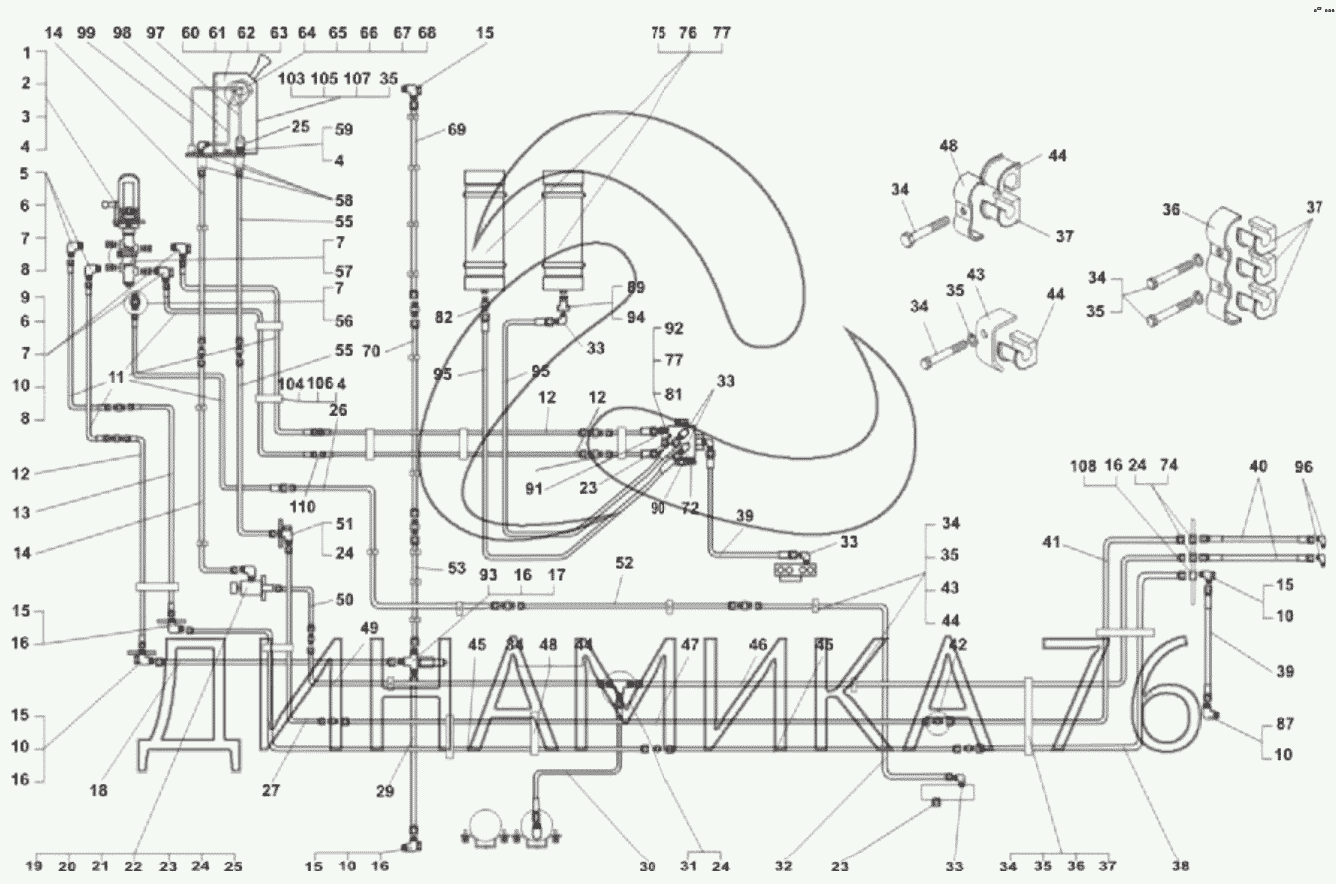 Схемы запчастей предназначены для справочных целей! Мы продаем не все запчасти от Монтаж гидравлического привода тормозов на БелАЗ-75306, представленные в этом списке.
