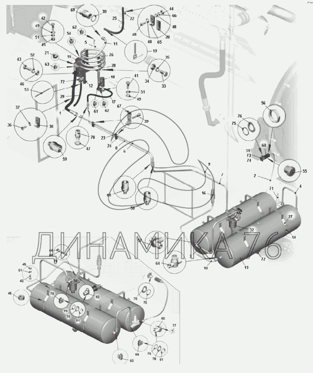 Схемы запчастей предназначены для справочных целей! Мы продаем не все запчасти от Монтаж трубопроводов компрессора на БелАЗ-75306, представленные в этом списке.