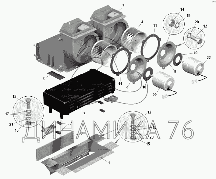 Перечень комплектующих от Отопитель кабины на БелАЗ-75306