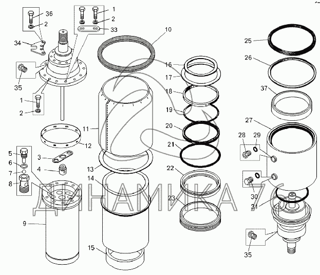 Перечень комплектующих от Цилиндр подвески на БелАЗ-75306