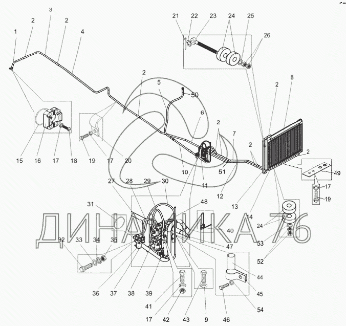Схемы запчастей предназначены для справочных целей! Мы продаем не все запчасти от Установка системы охлаждения топлива на БелАЗ-75306, представленные в этом списке.