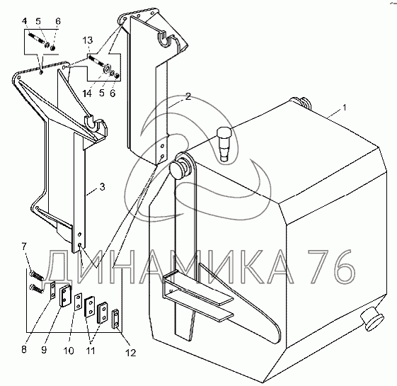 Схемы запчастей предназначены для справочных целей! Мы продаем не все запчасти от Установка топливного бака на БелАЗ-75306, представленные в этом списке.