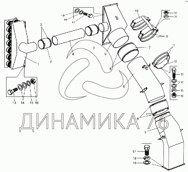 Перечень комплектующих от Установка всасывающих воздухопроводов на БелАЗ-75306