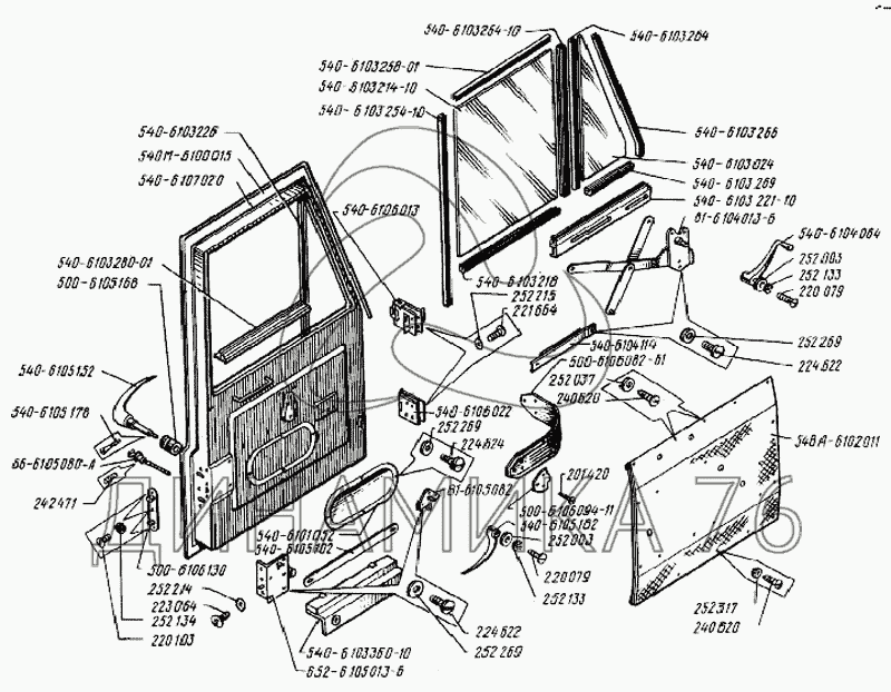 Схемы запчастей предназначены для справочных целей! Мы продаем не все запчасти от Дверь кабины на БелАЗ-75401, представленные в этом списке.