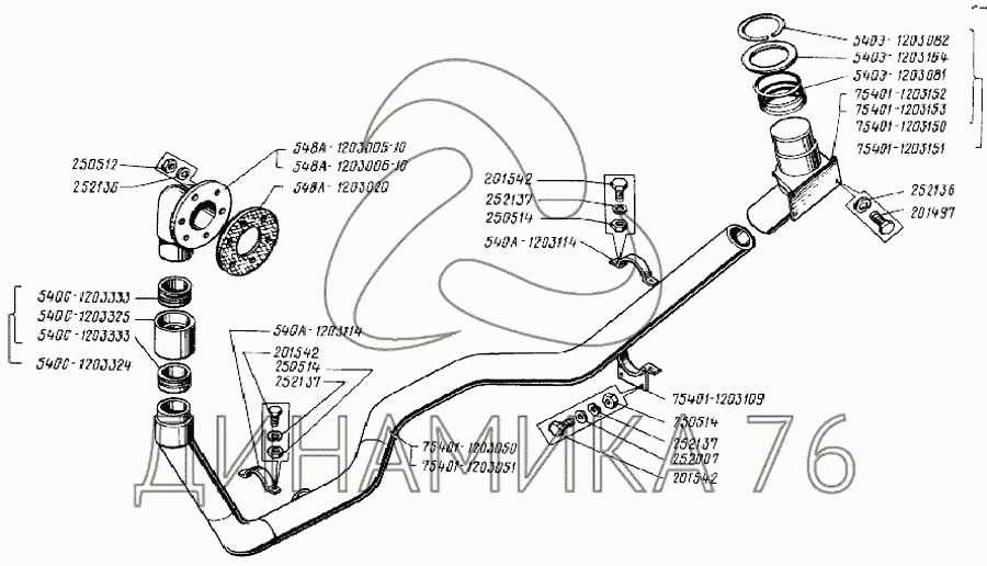 Схемы запчастей предназначены для справочных целей! Мы продаем не все запчасти от Трубопроводы системы выпуска отработанных газов на БелАЗ-75401, представленные в этом списке.