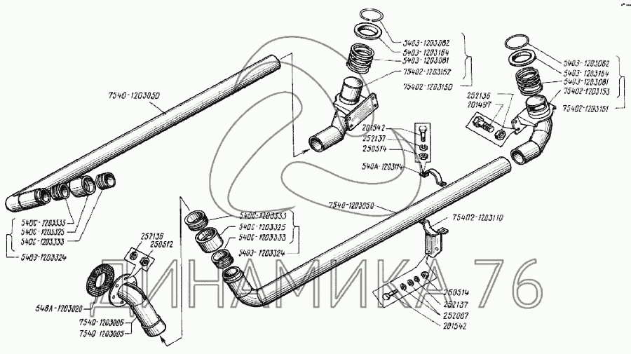 Перечень комплектующих от Трубопроводы системы выпуска отработанных газов на БелАЗ-7540