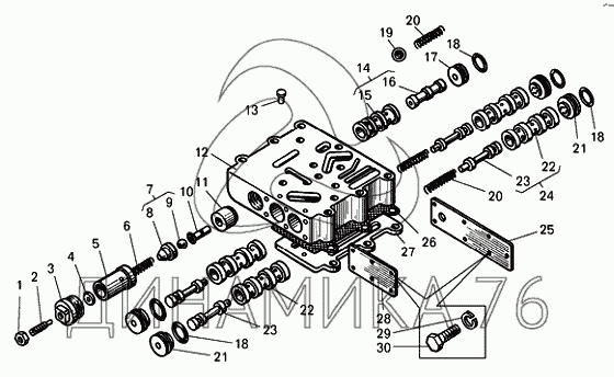 Перечень комплектующих от Золотниковая коробка БелАЗ-7540B на БелАЗ-7540А
