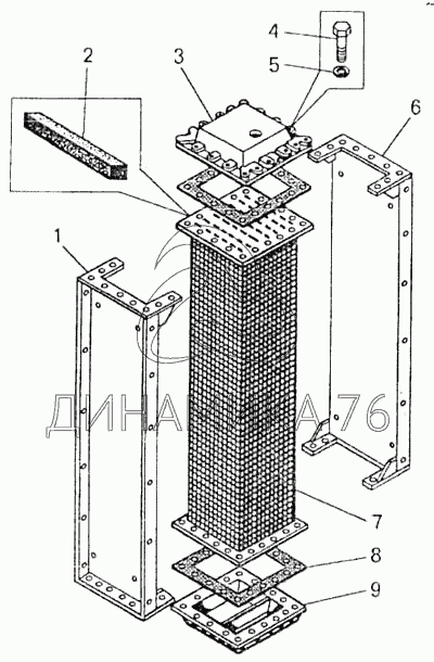 Перечень комплектующих от Радиатор масляный (ширина 200м) на БелАЗ-7547