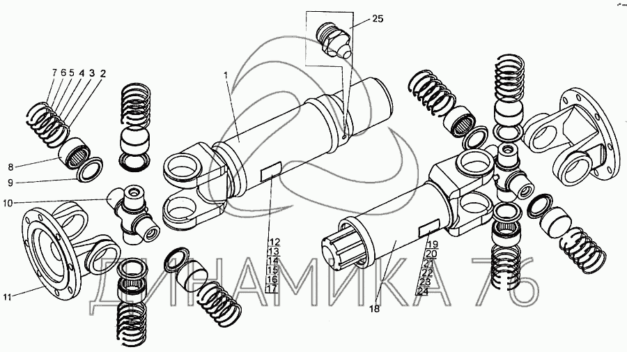 Перечень комплектующих от Вал карданный заднего моста на БелАЗ-7547