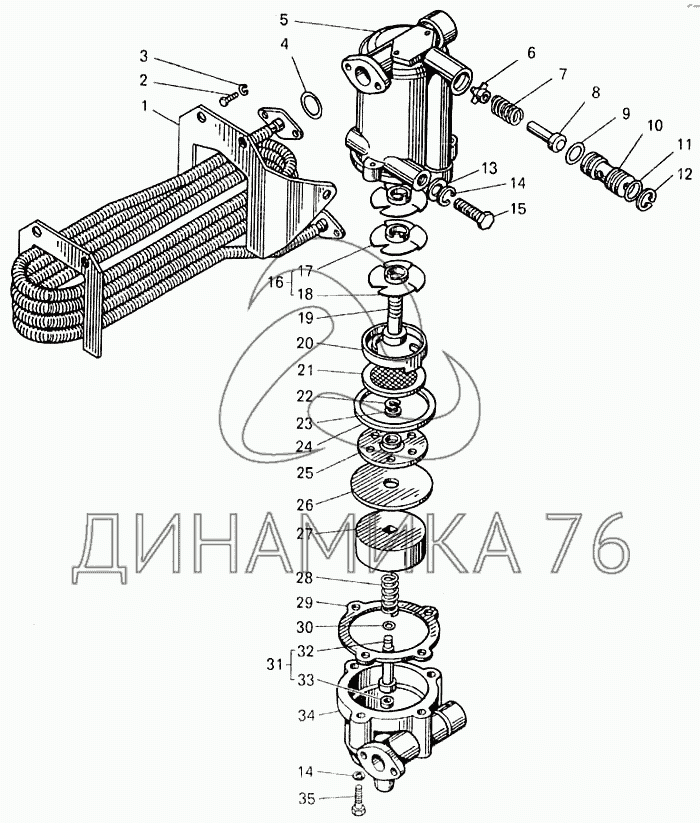 Перечень комплектующих от Водоотделитель на БелАЗ-7547