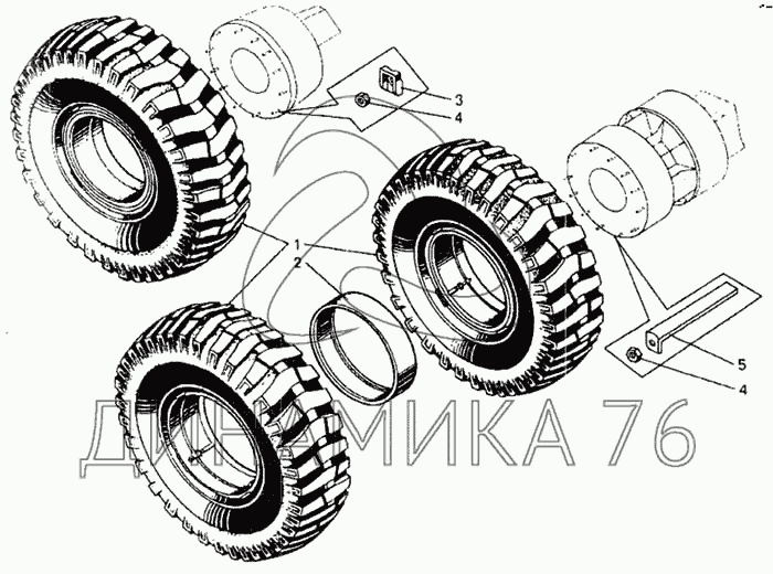 Колеса и детали их крепления на БелАЗ-7548А (до 2000 г.)