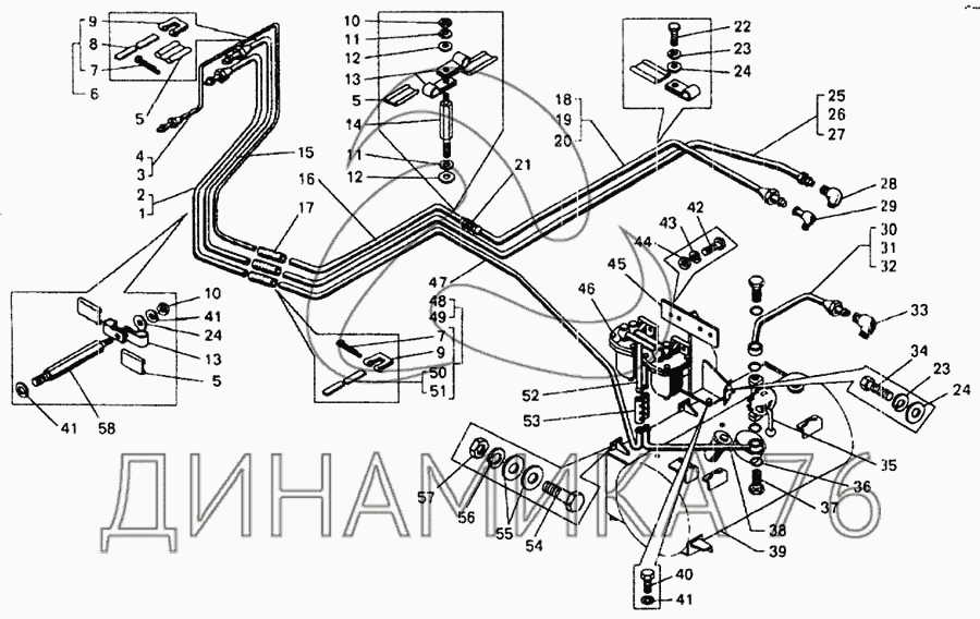 Перечень комплектующих от Топливные трубопроводы самосвала БелАЗ-75481 на БелАЗ-7548А