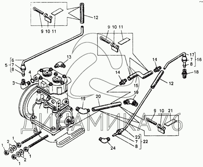Перечень комплектующих от Трубопроводы компрессора на БелАЗ-7548А
