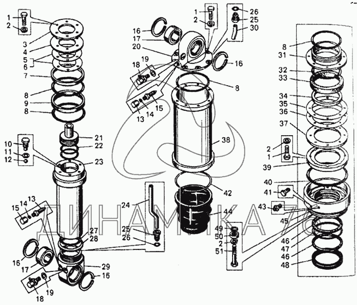 Перечень комплектующих от Цилиндр подвески (9.1) на БелАЗ-7548А