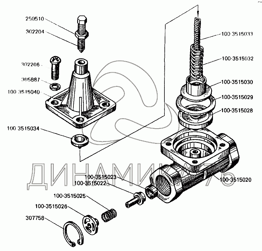 Перечень комплектующих от Клапан защитный одинарный на БелАЗ-7549