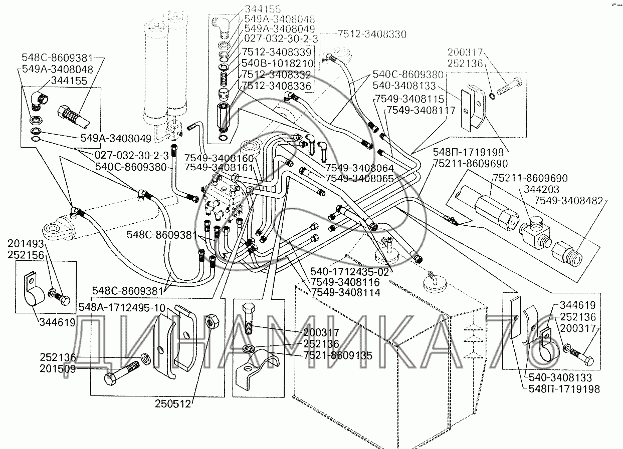 Перечень комплектующих от Трубопроводы рулевого управления БелАЗ-7549 на БелАЗ-7549