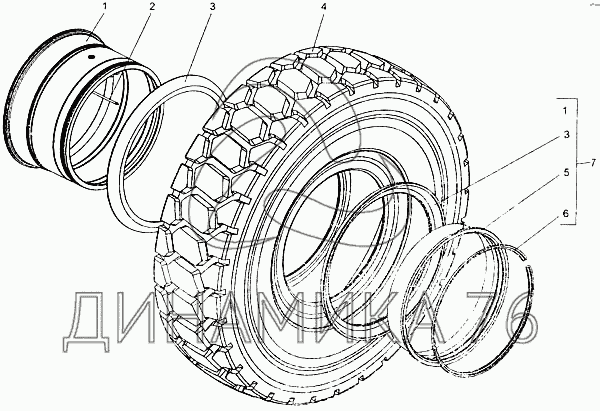 Перечень комплектующих от Колесо с шиной на БелАЗ-7555A