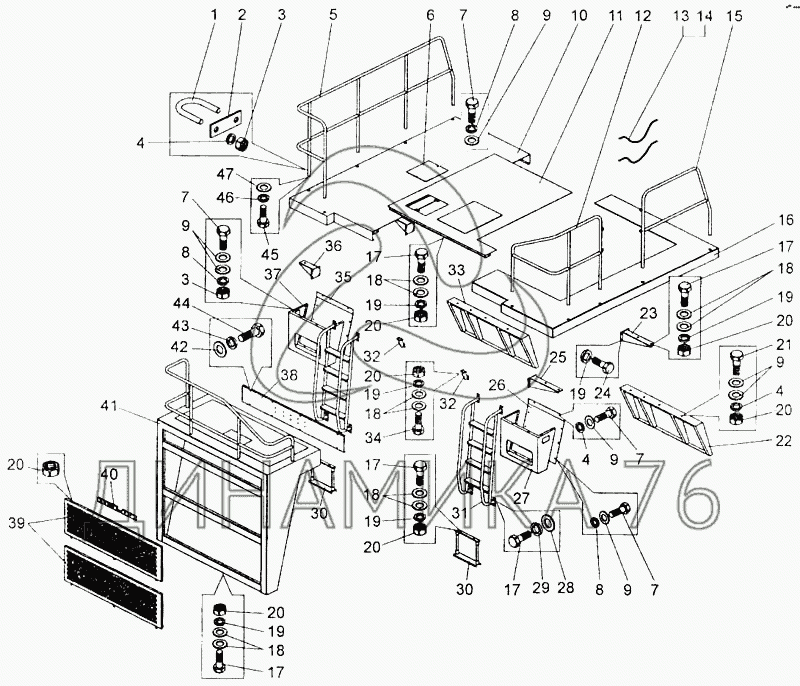 Схемы запчастей предназначены для справочных целей! Мы продаем не все запчасти от Установка оперения на БелАЗ-7555A, представленные в этом списке.
