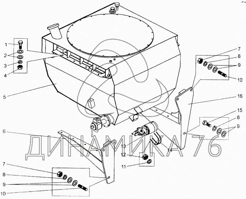 Перечень комплектующих от Установка топливного бака на БелАЗ-7555A