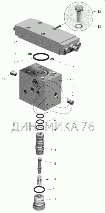 Перечень комплектующих от Автомат разгрузки насоса 75600-3428010 на БелАЗ-75600