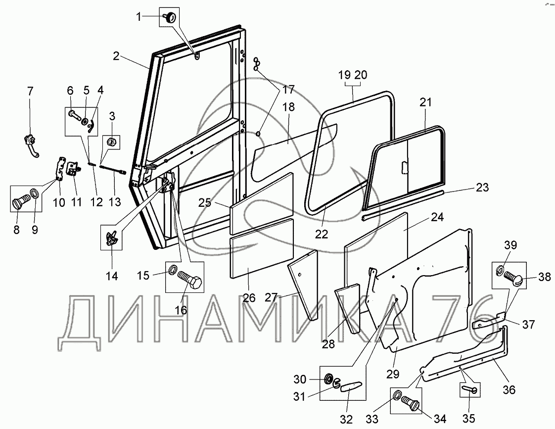 Перечень комплектующих от Дверь кабины 7555В-6100010-10 на БелАЗ-75600