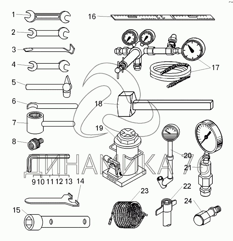 Перечень комплектующих от Комплект инструмента и принадлежностей на БелАЗ-75600