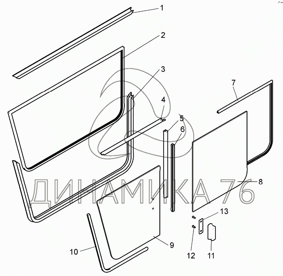 Стекло окна боковины неподвижное