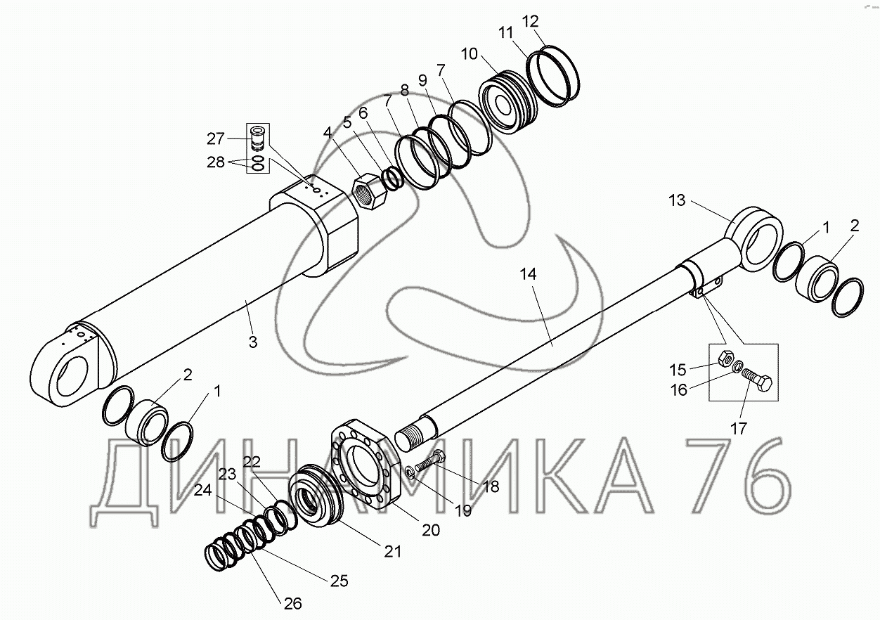 Перечень комплектующих от Цилиндр поворота 75600-3429010 на БелАЗ-75600