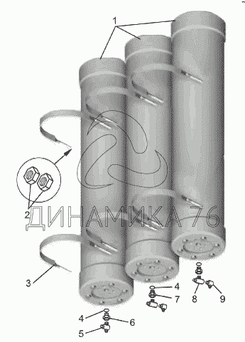 Перечень комплектующих от Установка пневмогидроаккумуляторов 75600-3500003 на БелАЗ-75600