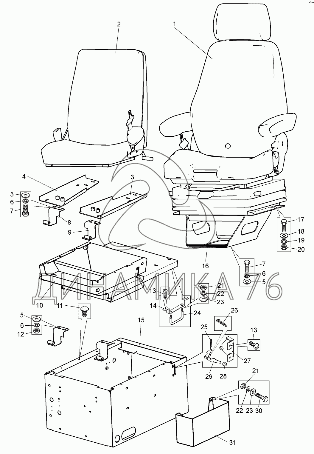 Схемы запчастей предназначены для справочных целей! Мы продаем не все запчасти от Установка сидений 75131-6800006-50 на БелАЗ-75600, представленные в этом списке.
