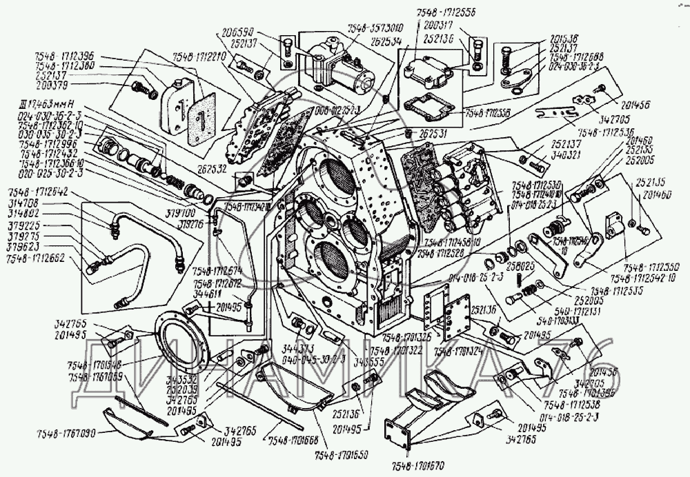 Перечень комплектующих от Картер гидромеханической передачи на Общий (см. мод-ции)