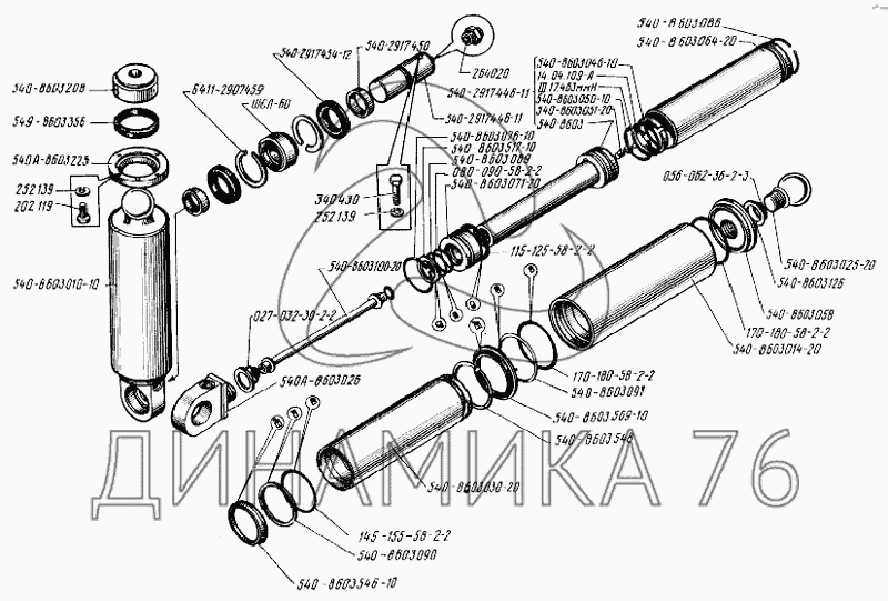 Перечень комплектующих от Цилиндр опрокидывающего механизма на Общий (см. мод-ции)