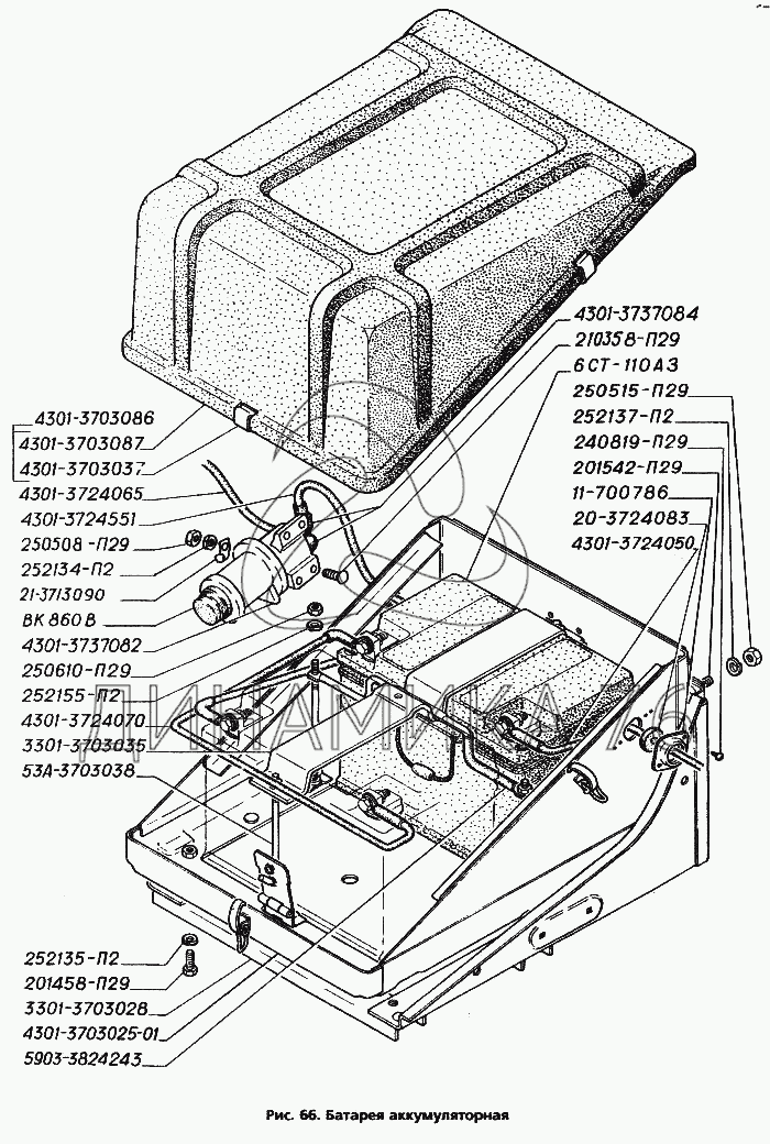Схемы запчастей предназначены для справочных целей! Мы продаем не все запчасти от Батарея аккумуляторная на ГАЗ-3306, представленные в этом списке.