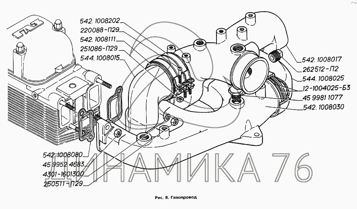 Перечень комплектующих от Газопровод на ГАЗ-3306