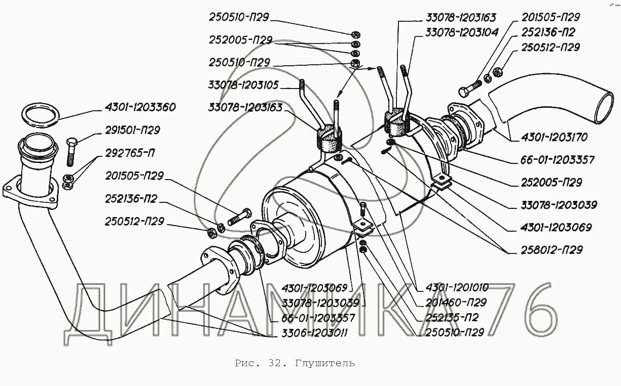 Перечень комплектующих от Глушитель на ГАЗ-3306